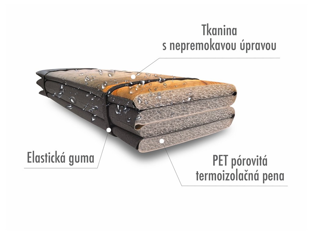 Sedáka je vyrobený z nepremokavých textílií, takže môžete sedieť aj na vlhkých a mokrých povrchochv príjemne a v suchu.